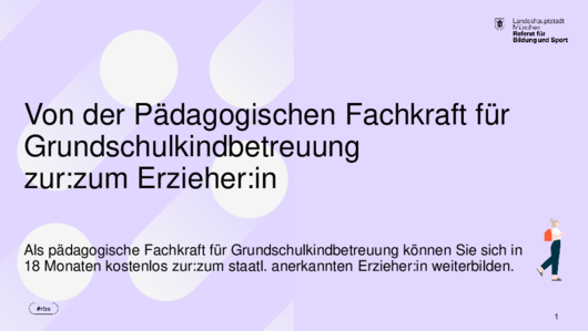 in der Sie in der Betreuung, Erziehung und Bildung von Grundschulkindern ausgebildet werden.