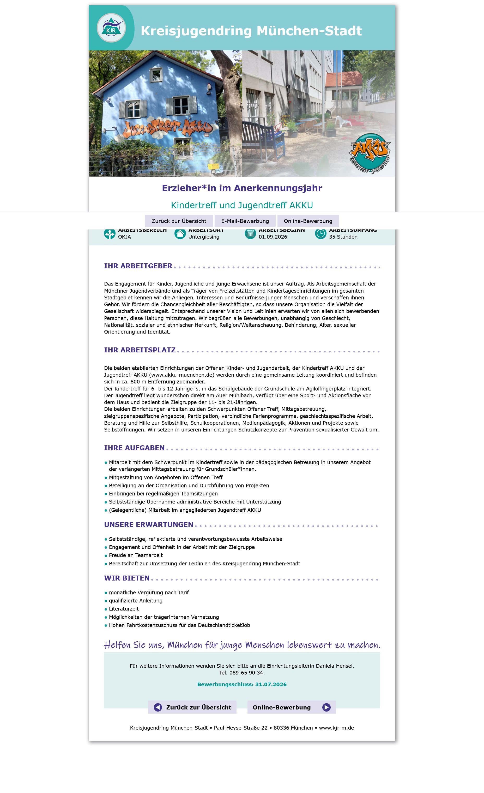 Hier finden Sie je nach Verfügbarkeit Stellenausschreibungen für Erzieher*innen, SEJ-Praktikant*innen, PIA-Auszubildende und Berufspraktikant*innen.
